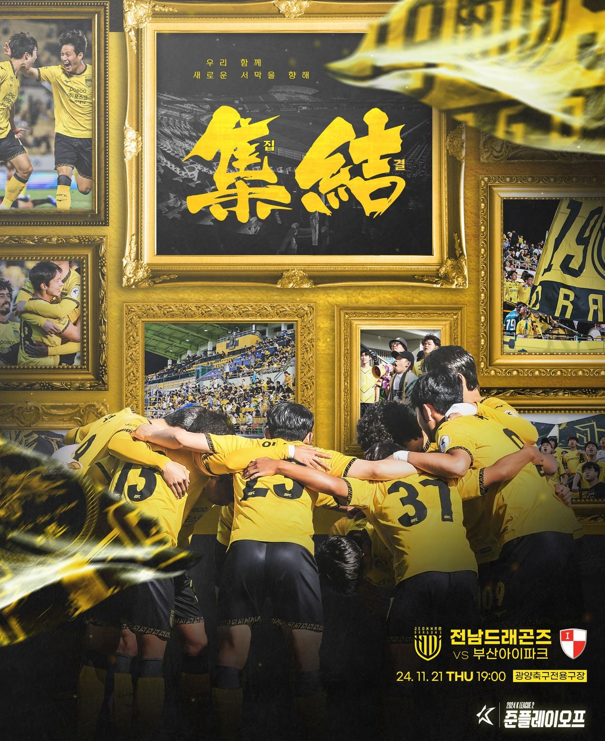K리그2 4위 전남 드래곤즈와 5위 부산 아이파크의 준플레이오프 경기가 단판 승부로 진행됩니다.