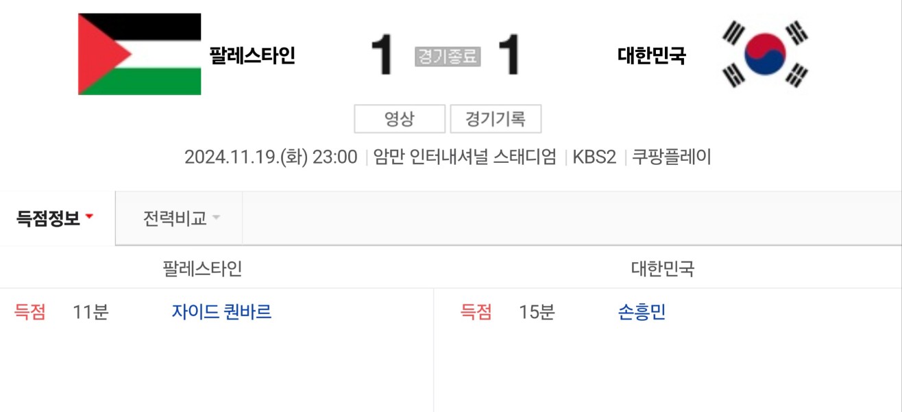 2026년 FIFA 북중미 월드컵 아시아 3차 예선의 11월 마지막 경기는 팔레스타인전이었습니다.