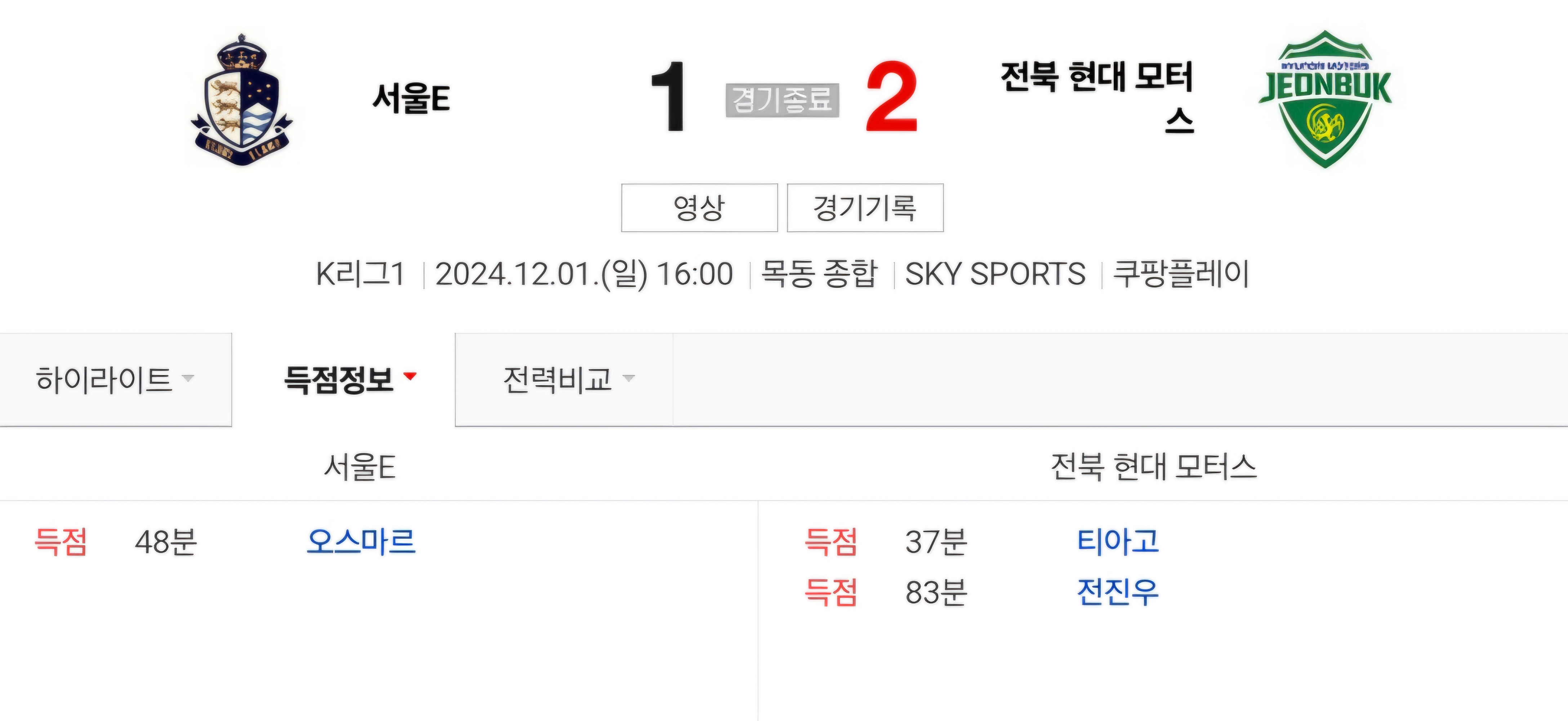 2024년 K리그 승강 플레이오프 1차전 서울이랜드 FC vs 전북 현대 모터스