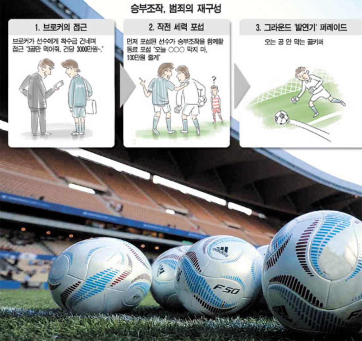 조직폭력배와 연루된 브로커들이 일부 축구 선수들에게 고의 실수나 승부에 영향이 가는 행위를 유도하고